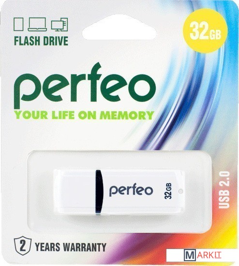 Markit » Флешки USB » USB Flash Perfeo C02 32GB (белый) [PF-C02W032]