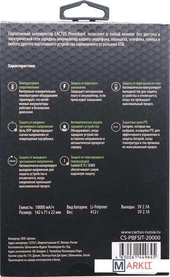 Markit » Портативные зарядные устройства » Внешний аккумулятор CACTUS CS-PBFSIT-20000 (черный)