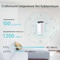 Благодаря проводному и беспроводному соединению между собой, устройства Deco работают как единое целое, обеспечивая максимально быстрый и непрерывный Wi-Fi. Хотите увеличить зону покрытия сети ещё больше? Просто добавьте ещё один модуль Deco.Устройства Deco вместе образуют единую Wi-Fi сеть с одним SSID. Ваш смартфон или планшет будет автоматически подключаться к Deco на самой большой скорости в любой точке вашего дома, обеспечивая по-настоящему бесшовный Wi‑Fi.Deco S4 обеспечивает непрерывное подключение до 100 клиентов. Высокая скорость гарантирована для всех устройств и задач, в том числе для просмотра веб-сайтов, загрузки файлов, стриминга или онлайн‑игр.Модуль Deco S4 может работать в качестве роутера или точки доступа. Просто выберите подходящий режим и ощущите максимальную гибкость при настройке сети!Подключите Alexa и управляйте Deco S4 с помощью голосовых команд. Не отвлекайтесь ни на что.Удобная функция родительского контроля позволит следить за активностью ваших детей в интернете.Deco S4 образует единую Mesh‑сеть со всеми моделями Deco. Если нужно увеличить покрытие, просто добавьте больше модулей.Настройка Deco S4 выполняется быстро и легко. Просто установите систему, загрузите приложение и следуйте инструкциям на экране.Комплектация: 3 устройства Deco S4R1 кабель Ethernet RJ453 адаптера питания1 руководство по быстрой настройке
